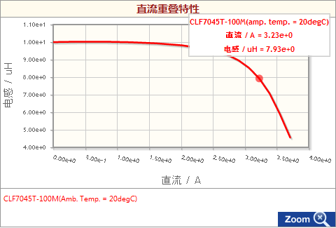 电感器中流过直流偏置电流时,会接近磁性材料的磁饱和状态,因此透磁率会下降,电感值也随之下降。这样的特性称为直流重叠特性。